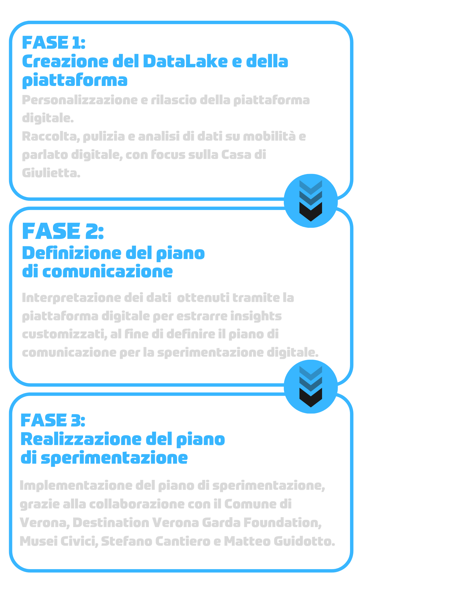 Il progetto, che si articola in 3 fasi, è quindi totalmente data driven: i dati raccolti tramite la piattaforma orientano la sperimentazione digitale, diventano così strumenti concreti per rendere Verona una città più accogliente, sostenibile e smart.